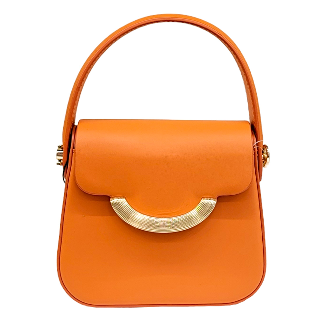 Τετράγωνο τσαντάκι σε πορτοκαλί απόχρωση. Διαθέτει χρυσή αλυσίδα.