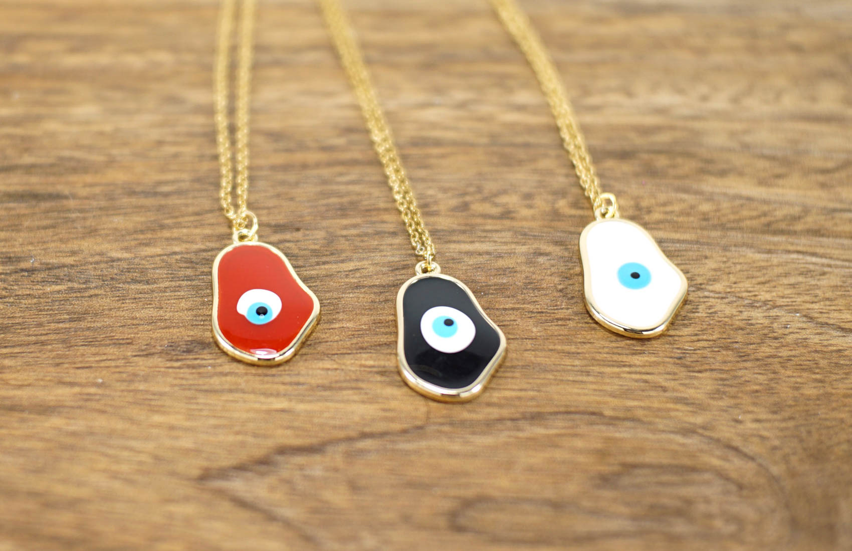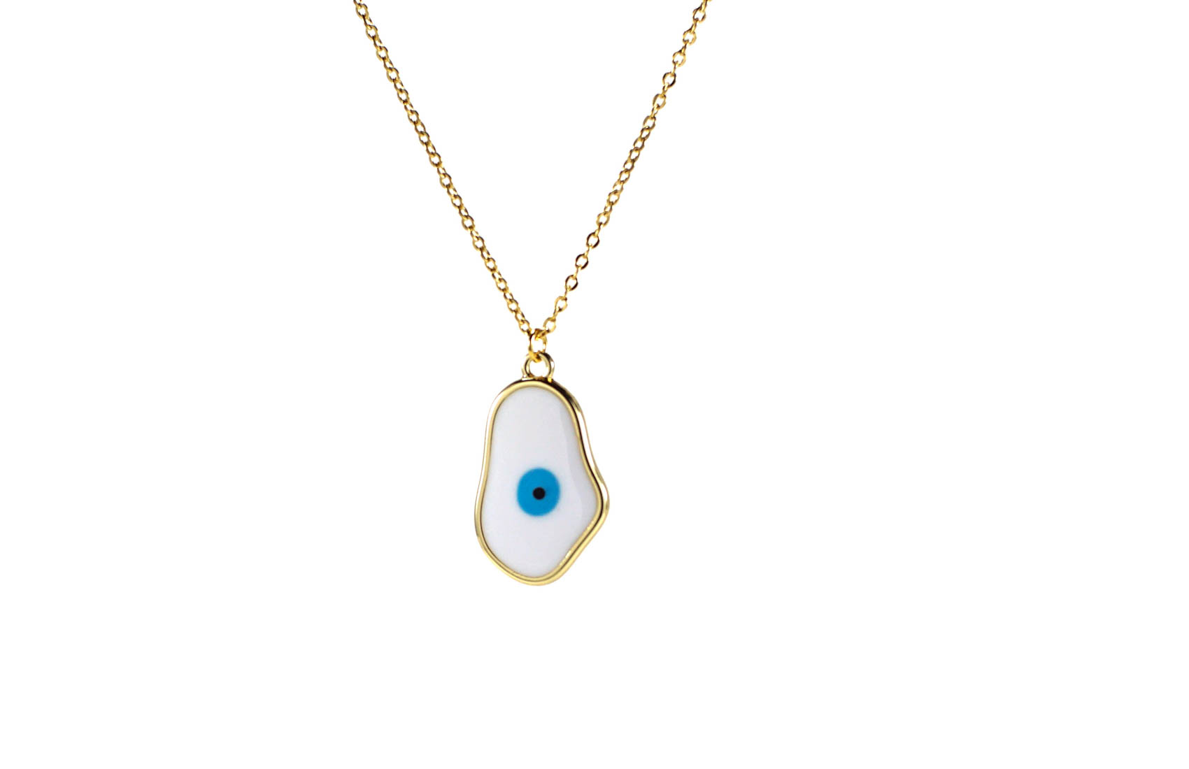 Κολιέ με κρεμαστό ασύμμετρο μάτι σε λευκό χρώμα